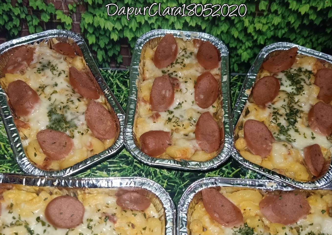 - Angkat masukkan kedalam cup aluminium foil beri taburan keju mozarella,sosis dan taburi denga parsel trus panggang selama 15menit bisa juga langsung dimakan