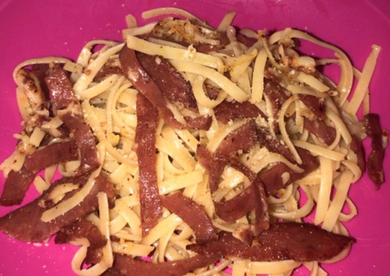- Kemudian masukan spaghetti, sedikit minyak goreng, air rebusan spaghetti sedikit, garam, lada, dan juga keju